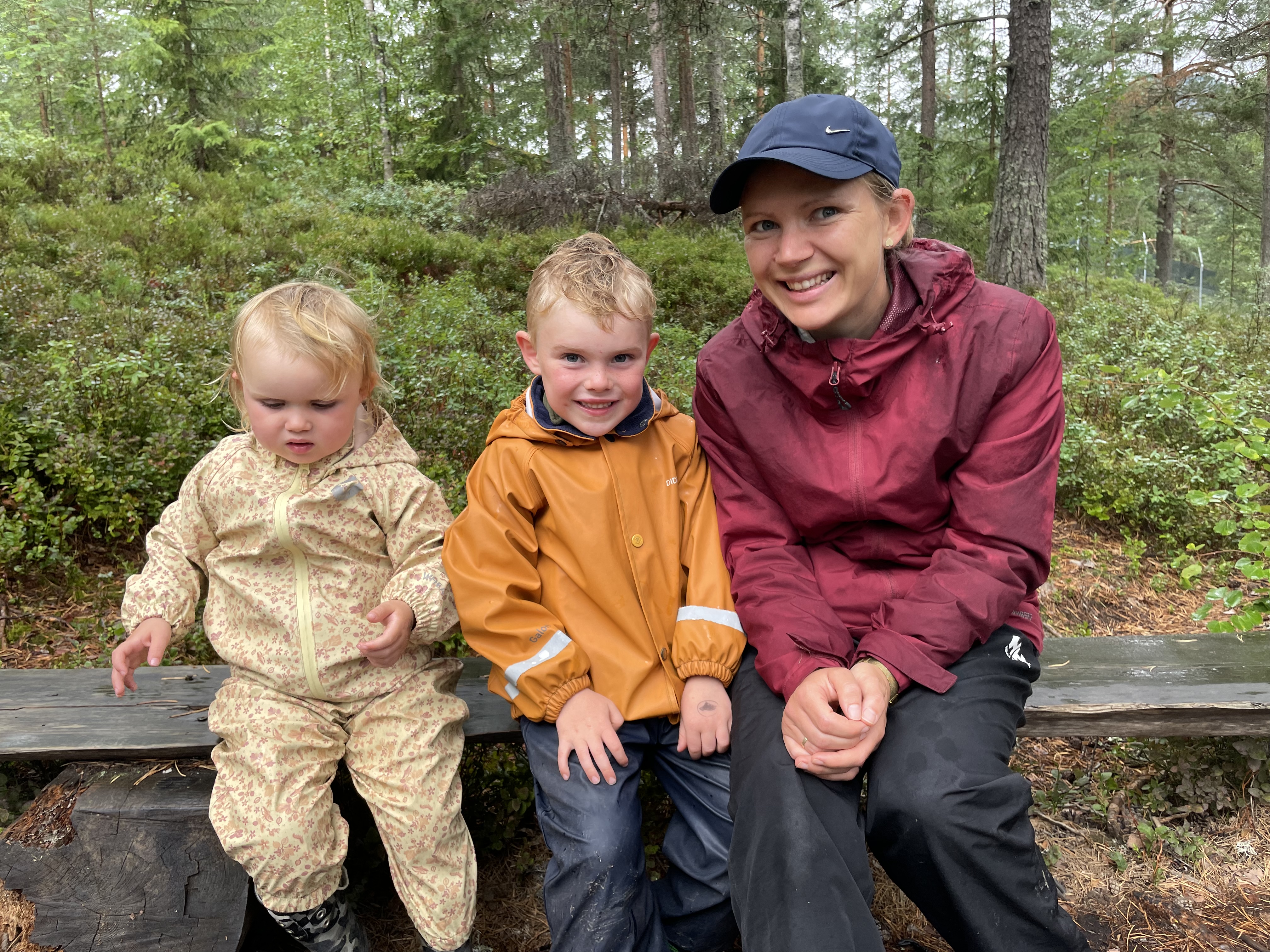 Efter de obligatoriske tissepauser ankom vi til bjørneparken 10.30, men vi ventede lidt med at gå ind. Det stod nemlig ned i stænger, så vi havde ikke så travlt med at komme ud. Den første fodring er først 11, så vi brugte lidt tid på at få gjort alting vandtæt; både børn og skiftetøj. Vi gik ind i bjørneparken lige i tid til den første fodring, og regnen stilnede heldigvis af nu. Resten af tiden i parken blev nogenlunde tør - ind i mellem kom solen endda også frem.