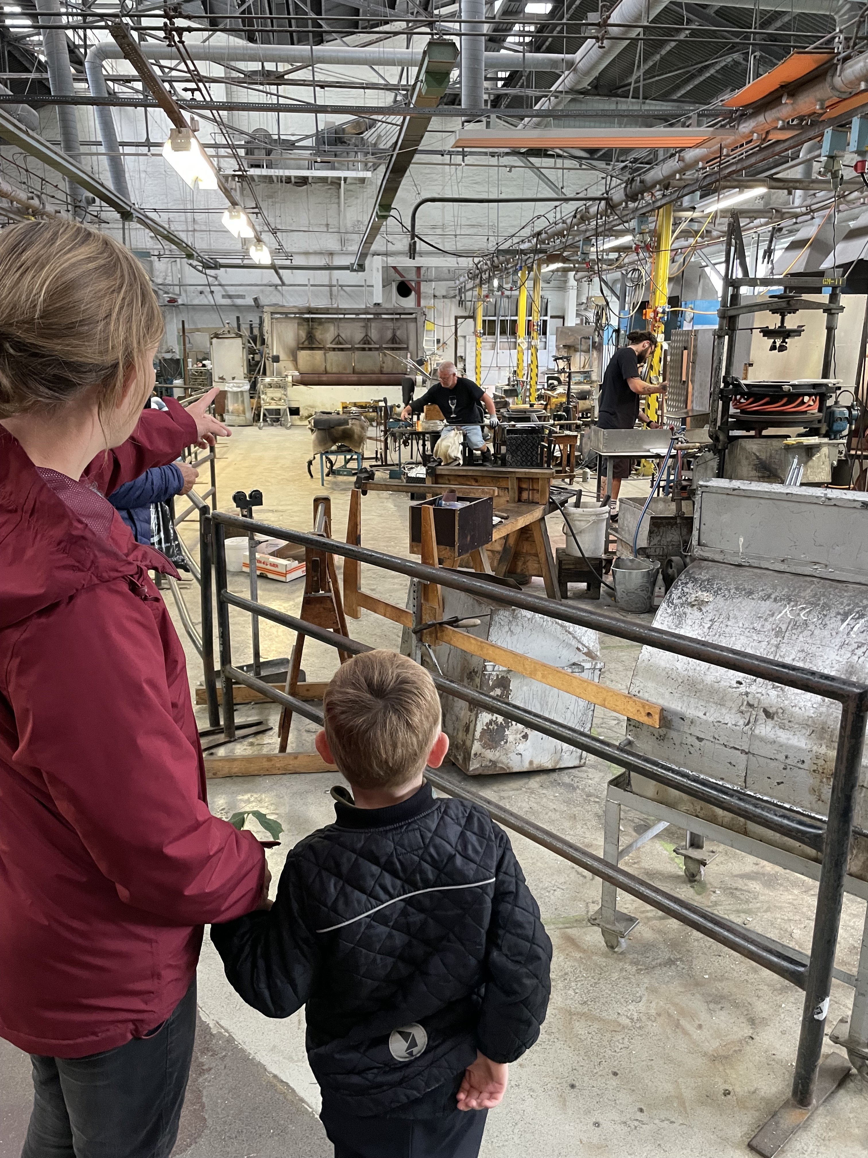 Efter at have slukket lego-tørsten (eller; da mor og far sagde at nu skal vi videre) gik vi ind i de tilstødende lokaler hvor man kunne se dem puste glas. Dét var sejt! Både Aksel og Astrid, som nu var vågen igen, syntes det var lidt vildt at kigge på.