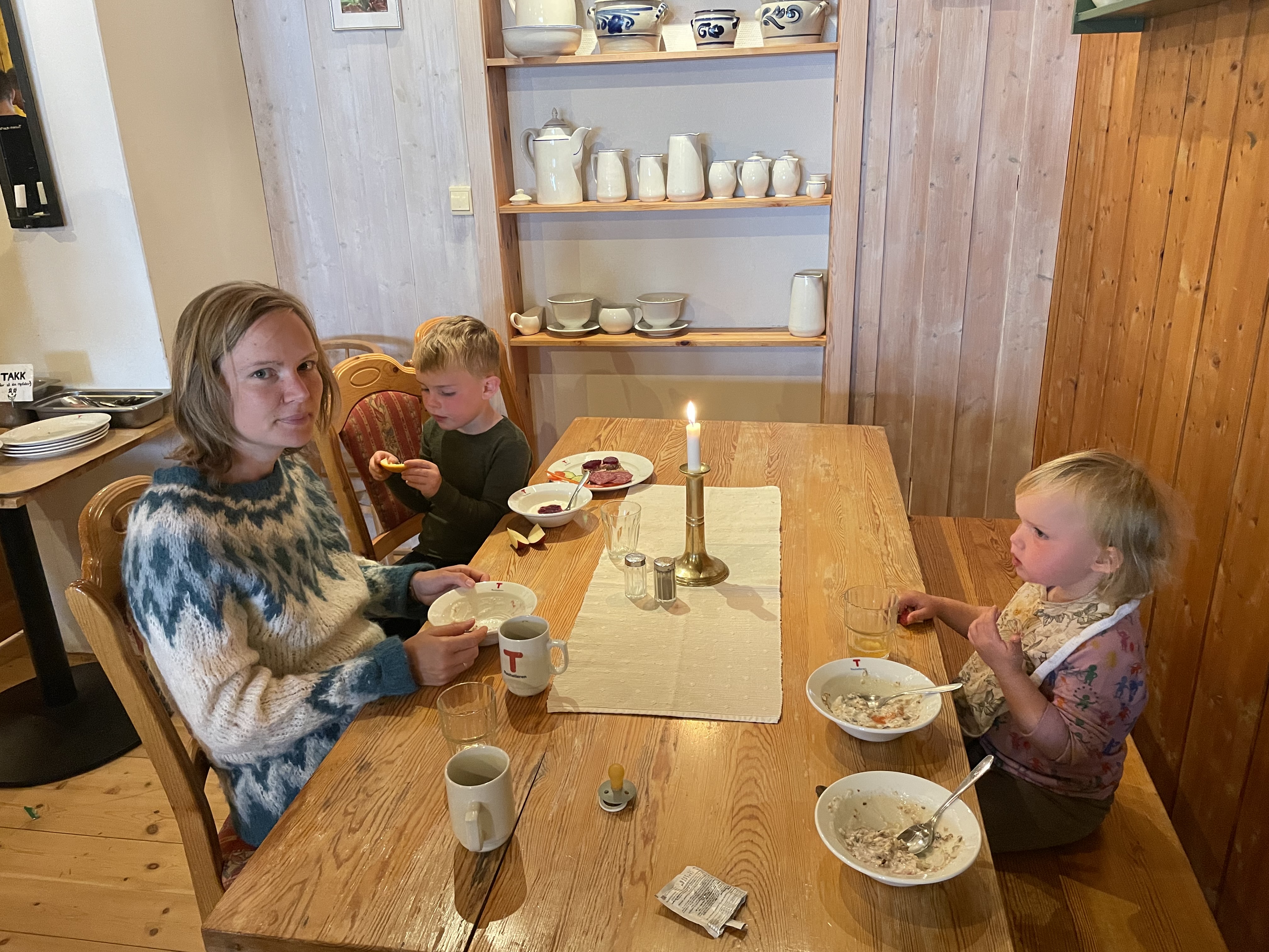 Til middagen kl. 18 fik vi gulerodssuppe til forret, lammekød i porresovs, kartofler og grøntsager til hovedret og karamelbudding til dessert. Aksel faldt hurtigt i søvn den aften, men Astrid havde vi glæde af til rigtig sent på aftenen. Derfor fik Astrid da også mulighed for igen at se til hønsene, men også for at se, hvordan køerne blev kaldt ind fra marken, og set hvordan en af husets piger vaskede og malkede køerne. Det var både spændende og lidt skræmmende ifølge Astrid. Særligt da en af køerne vred sig i sin bås, og der lød et højt spektakel fra gitteret som den stødte imod.