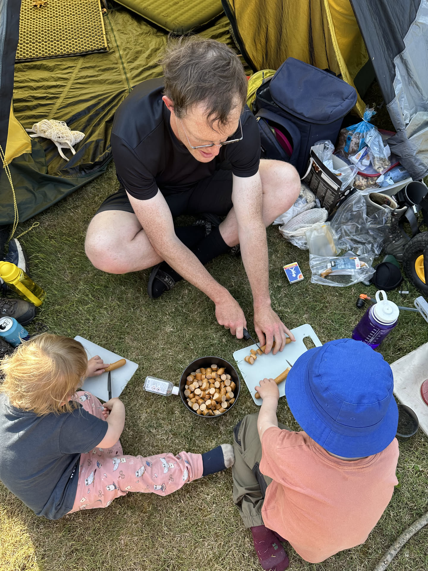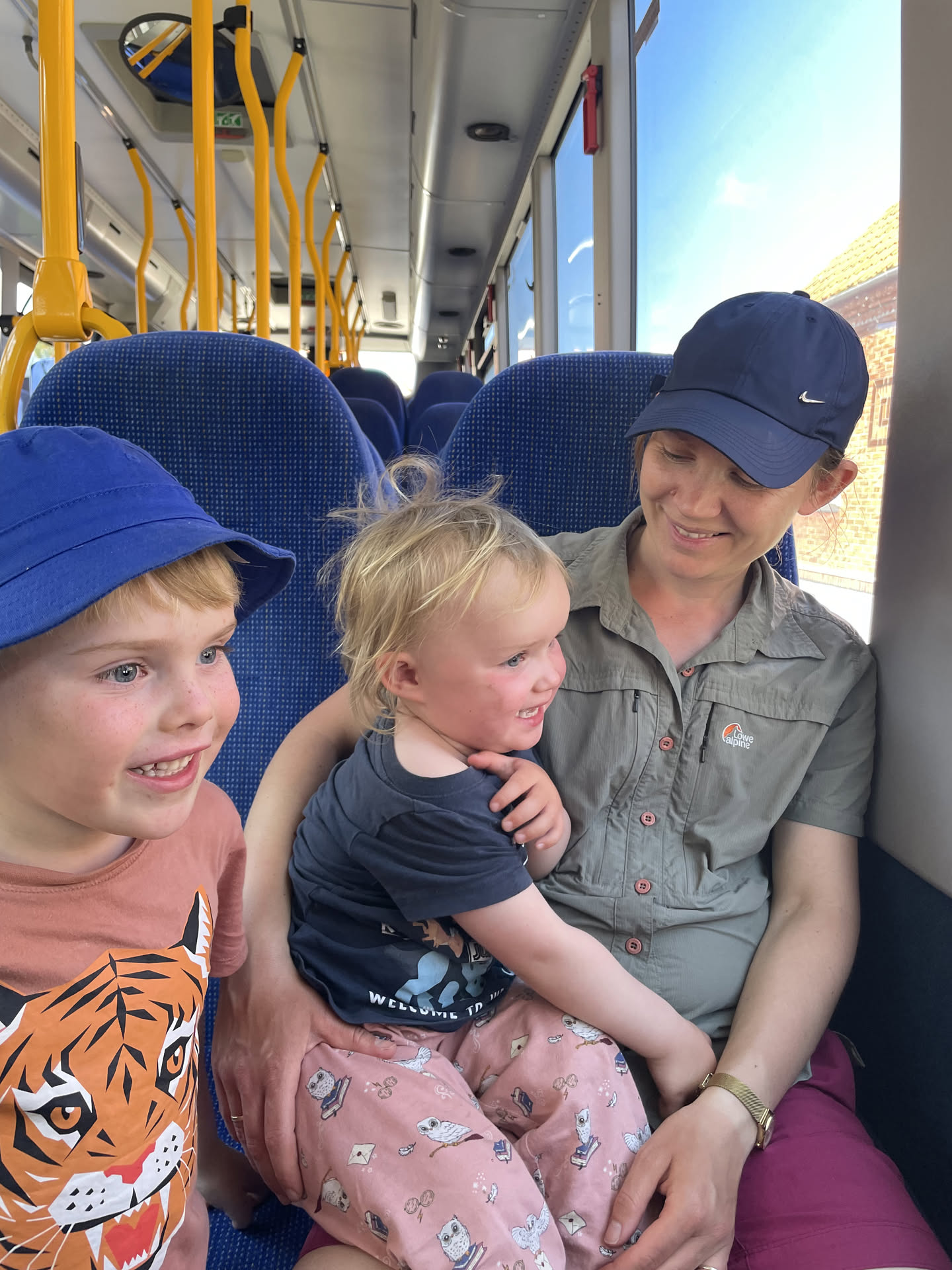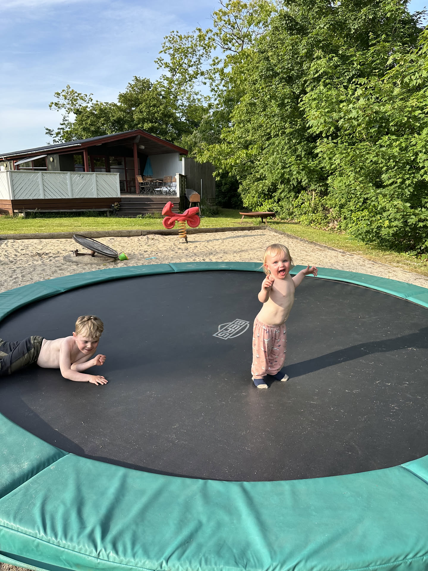 Fra Aarsdale Mølle gik vi ad cykelstien videre til Nexø. En længere tur ud over marker ad små landeveje. I Nexø fandt vi en bus som heldigvis gerne ville tage os med til Aakirkeby. I Aakirkeby gik vi til den nærmeste campingplads, som var en meget lille en af slagsen og som overvejende var bosat af ældre mennesker. Mange af dem hollændere, af en eller anden grund. Der var ikke meget at lege med for bønene, men der var da en trampolin som især Astrid var meget glad for.
