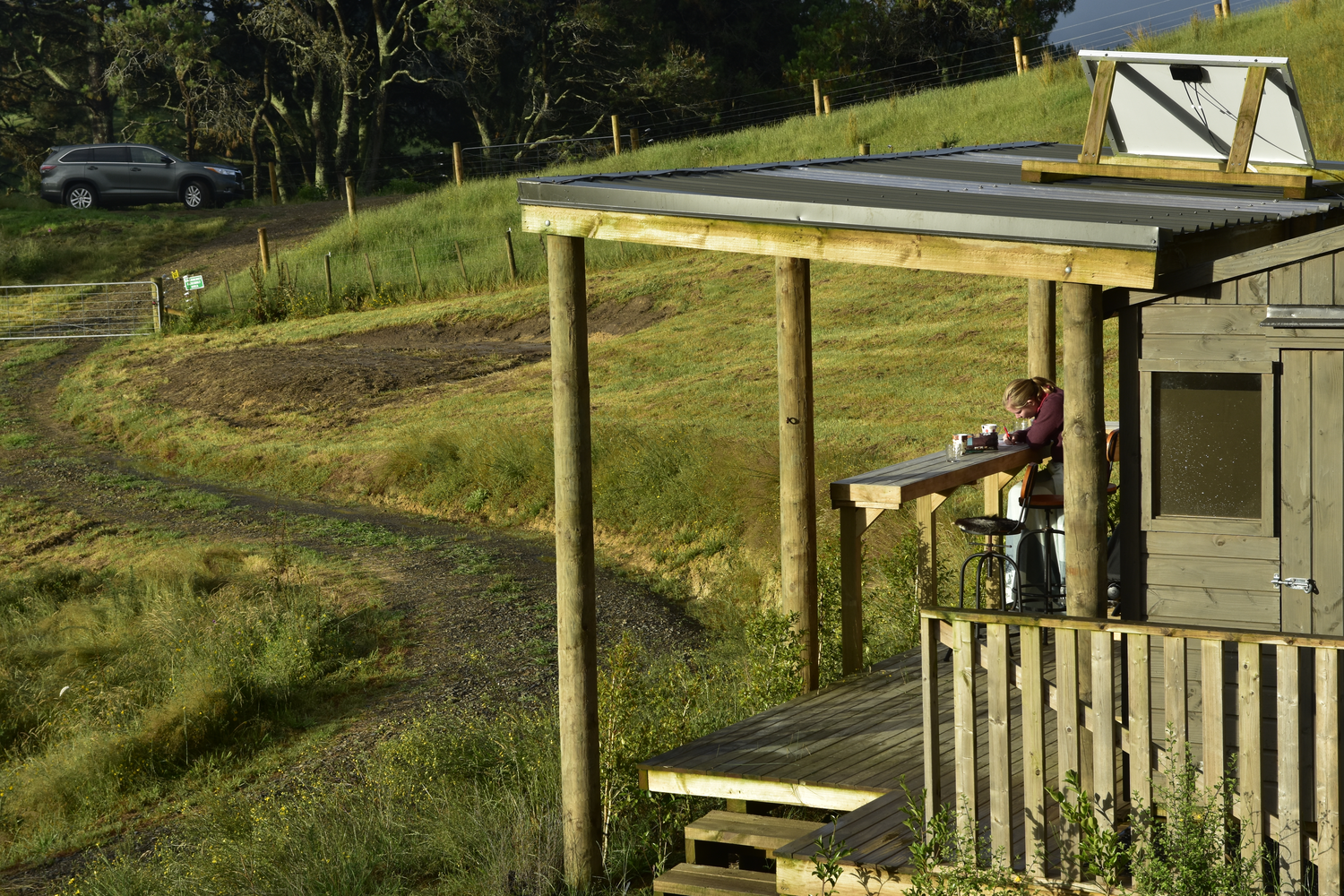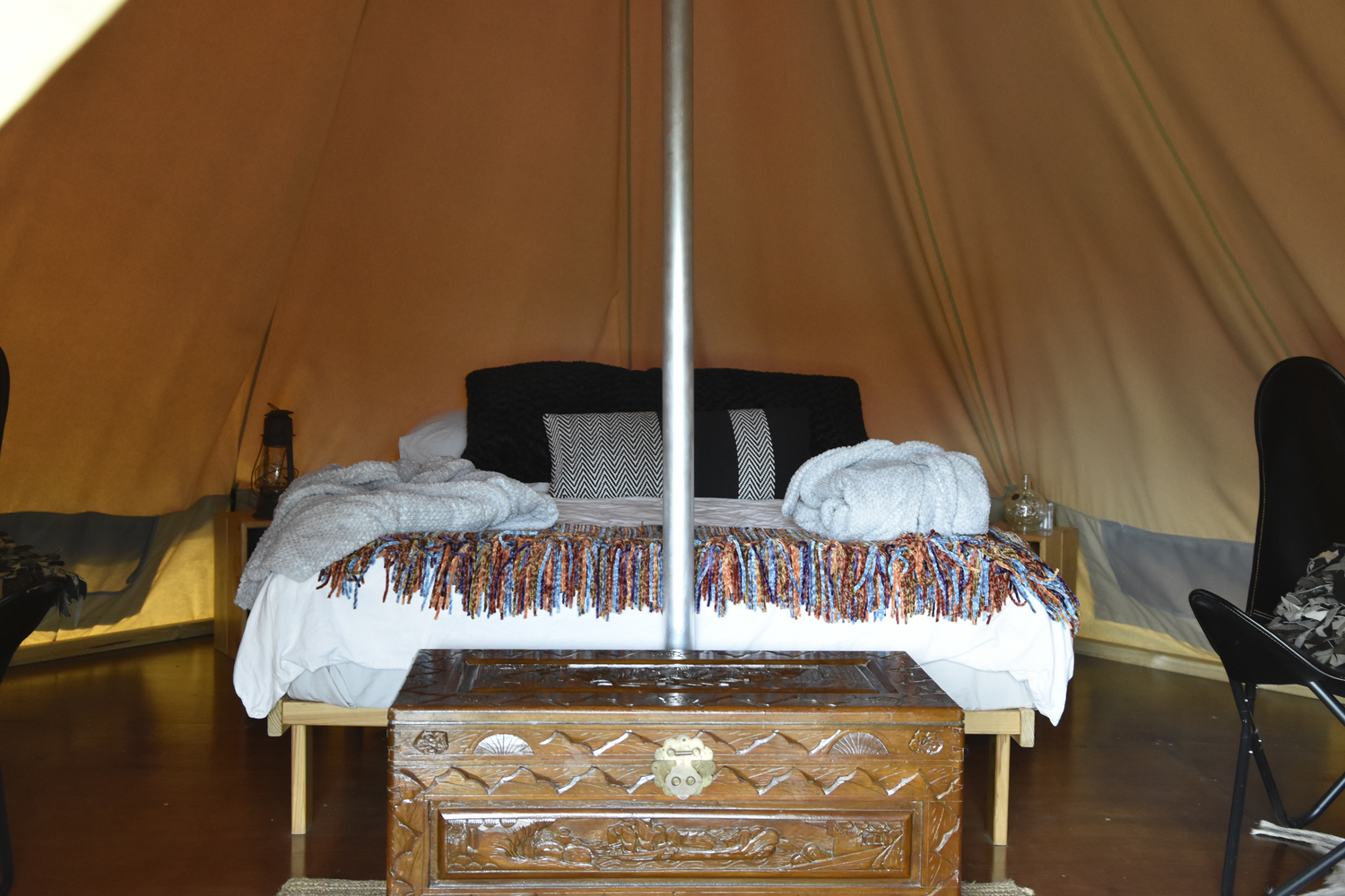 Efter at vi havde tjekket ud gik turen ud til vores bil og derefter ud til lufthavnen efter vores bagage. Først skulle vi dog købe ind til aftensmad, hvilket vi virkelig skulle have gjort dagen før. New Zealænderne tager deres juletid alvorligt og ingen supermarkeder må holde åbent juledag! Fy-fy. Heldigvis har nogle kiosker lov til at holde åbent, så vi fandt noget ”heat-n-eat”. Vi havde også håbet på en flaske New Zealandsk vin, men det var simpelthen ikke til at støve op juledag. I alle fald kørte vi så til lufthavnen og fik vores tasker, og alle vores ting var der stadig! De var endda gået igennem tolden, som ellers er meget streng, endnu værre end når man rejser til Californien. Efter lufthavnen kørte vi sydpå til Mercer, hvor vi skulle overnatte i et såkaldt glamping telt. Selve teltet var et safaritelt, men udstyret med alt man ville forvente på et hotelværelse, blot ude i naturen.