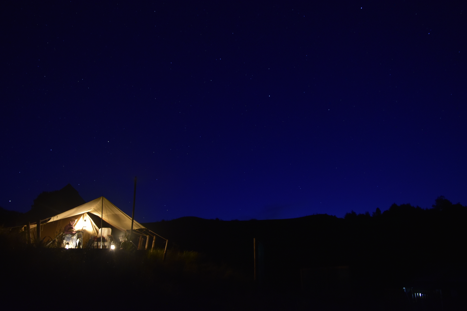 Aftenen gik med at lave aftensmad, drikke varm te, læse, skrive dagbog og nyde stilheden på landet mens solen sænkede sig over landskabet. Det klarede heldigvis op og blev en flot stjerneklar aften og nat.